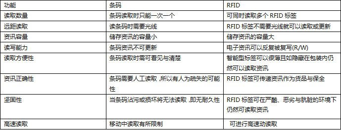 RFID與條碼的比較